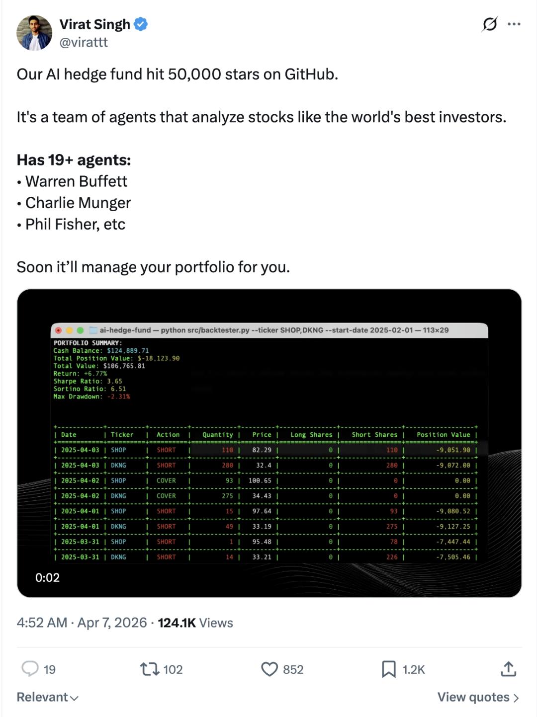 这就是最近Github最热的项目之一AI Hedge Fund。