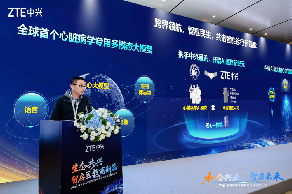 在当天下午的新业务分论坛上,国家放射与治疗临床医学研究中心专家梁义秀教授发表题为《推动心血管诊疗智能化多模态融合新范式》的主题演讲。他表示,国家放射与治疗临床医学研究中心将与中兴通讯跨界协同,依托“观心大模型”与中兴通讯全域智算生态,联合打造“观心一体机”等创新产品,并共建心脏病学专用多模态大模型,深度覆盖心血管疾病诊疗全流程,开启心血管诊疗的智能化新时代。