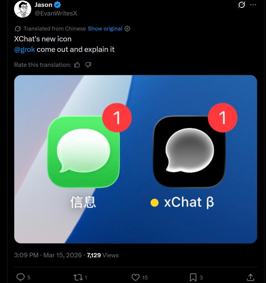 没错,XChat直接内置了马斯克旗下的Grok模型,很多情景都可以直接调用AI帮忙。