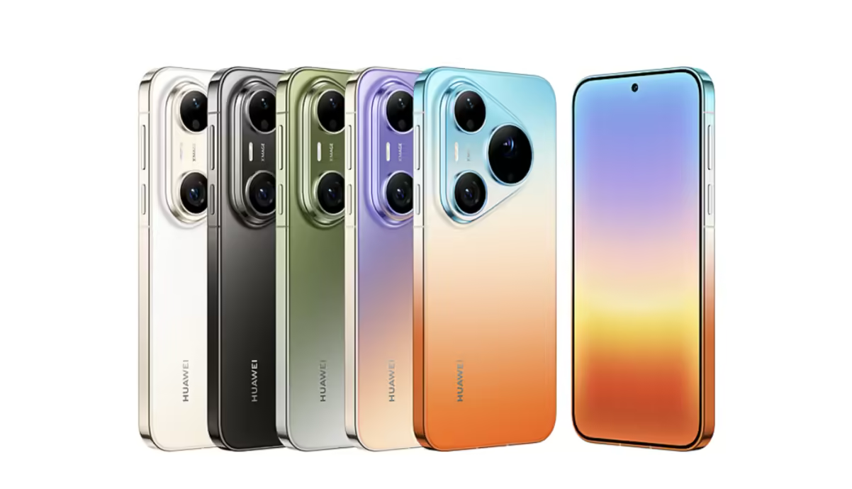 ▲ Pura 90 Pro Max,从左至右依次为晨曦金、曜石黑、翡翠湖、霞光紫、橘子海
