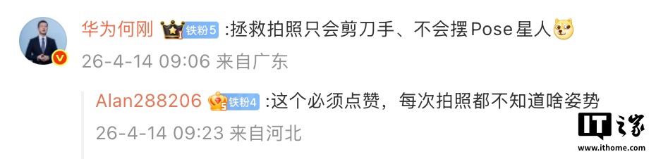 此外,华为 Pura 90 系列手机支持 AI 姿势推荐,开启该功能后,AI 会自动推荐拍照姿势。华为终端 BG 首席执行官何刚在评论区表示:“拯救拍照只会剪刀手、不会摆 Pose 星人”。