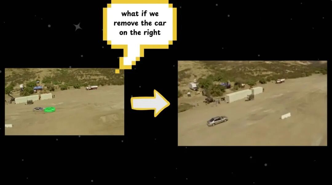 传统视频后期有一个公开的秘密:从画面中移除一个物体很容易,但让整个场景看起来好像那个东西从来就不存在——这件事难到令人发指。把一个抱着吉他的人移走,你会得到一把悬浮在半空中、违背重力的吉他。好莱坞视效团队为修复这类问题,往往要花上好几周。