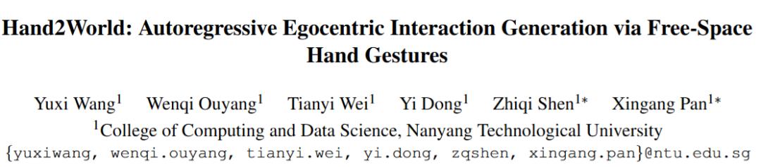 [1] Wang et al., "Hand2World: Autoregressive Egocentric Interaction Generation via Free-Space Hand Gestures," arXiv:2602.09600, 2026.