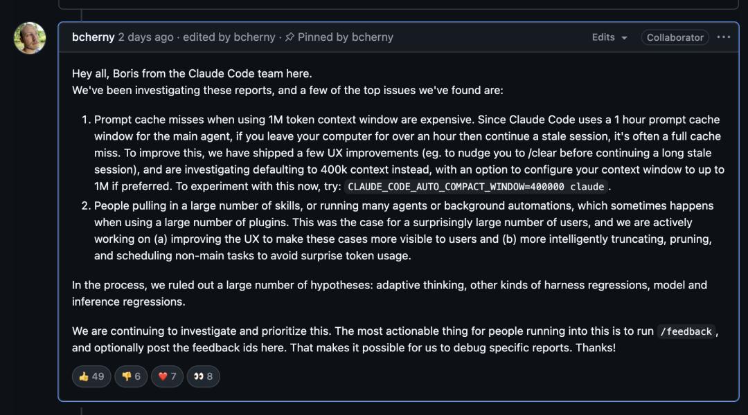 Cherny同时解释了缓存策略的设计逻辑:Anthropic在后台持续测试不同的缓存策略组合,目标是优化整体的缓存命中率、Token消耗和延迟表现。