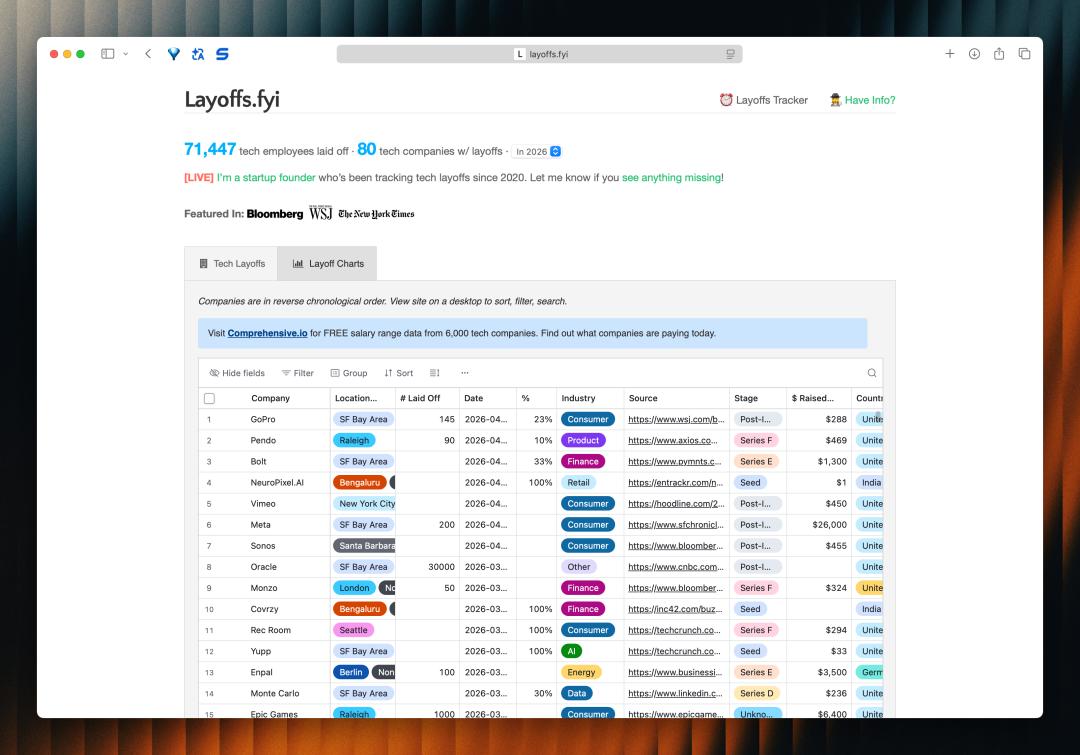 Layoffs.fyi 统计页面