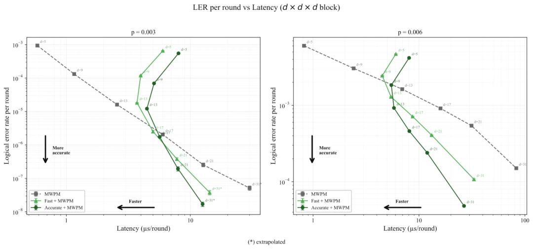 相比于单独的PyMatching方案,Fast模型能带来2.5倍加速,同时将准确率提升至原来的1.11倍。