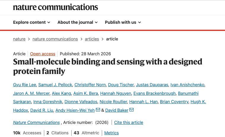 相关研究成果以「Small-molecule binding and sensing with a designed protein family」为题,已刊登 Nature Communications。