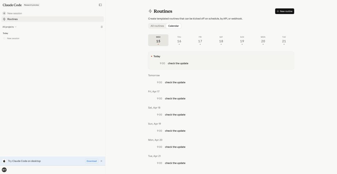 除了软件交互层面的更新,Anthropic 还给 Claude Code 加了一个很关键的新能力,「Routines」。