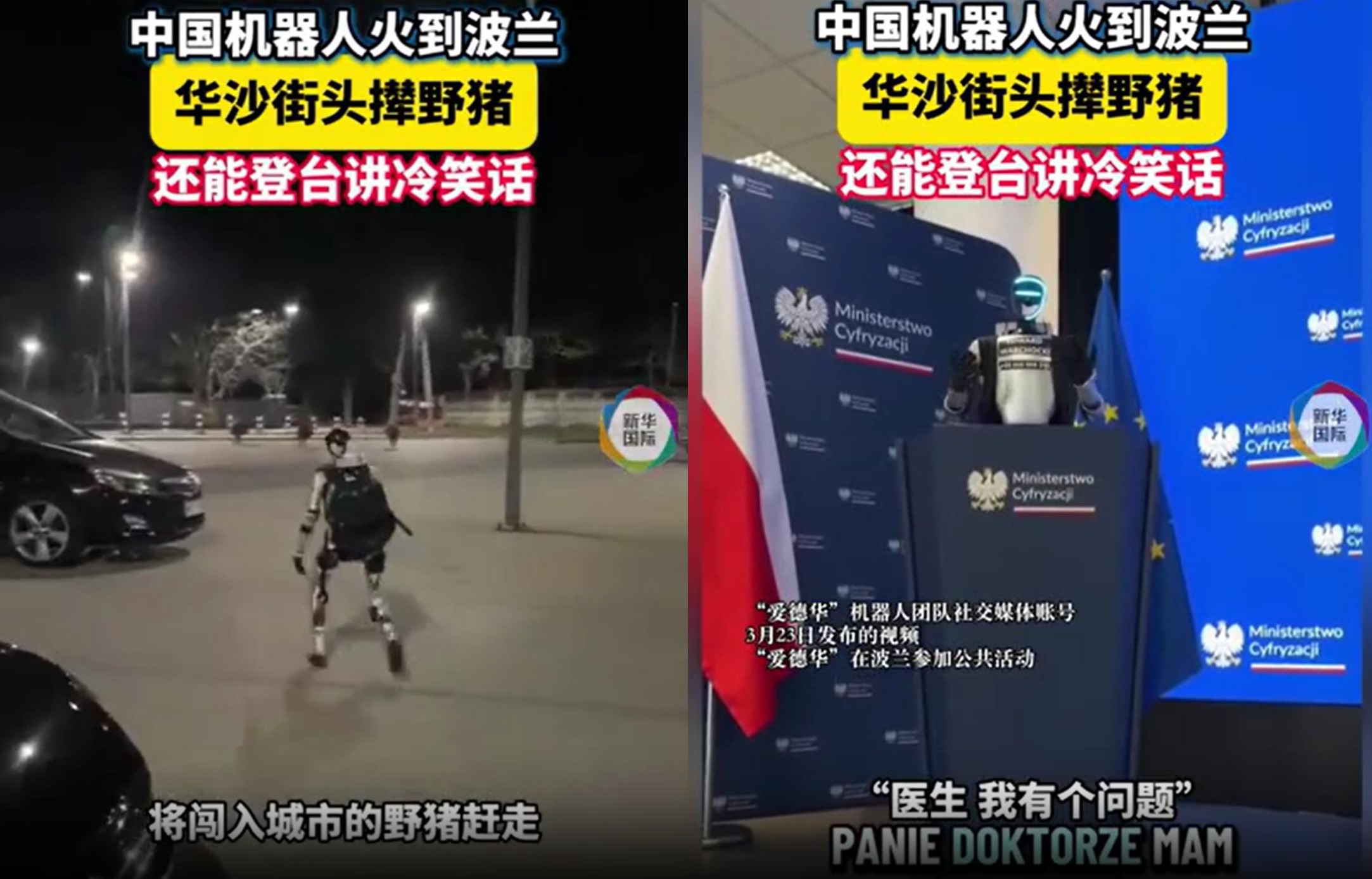 原来,宇树推出的G1人形机器人在被引入波兰当地后,被命名为「爱德华」(Edward),并在首都华沙执行各种工作任务,既包括在街头驱赶野猪,也包括在波兰议会进行演讲,例如用波兰语讲个冷笑话。