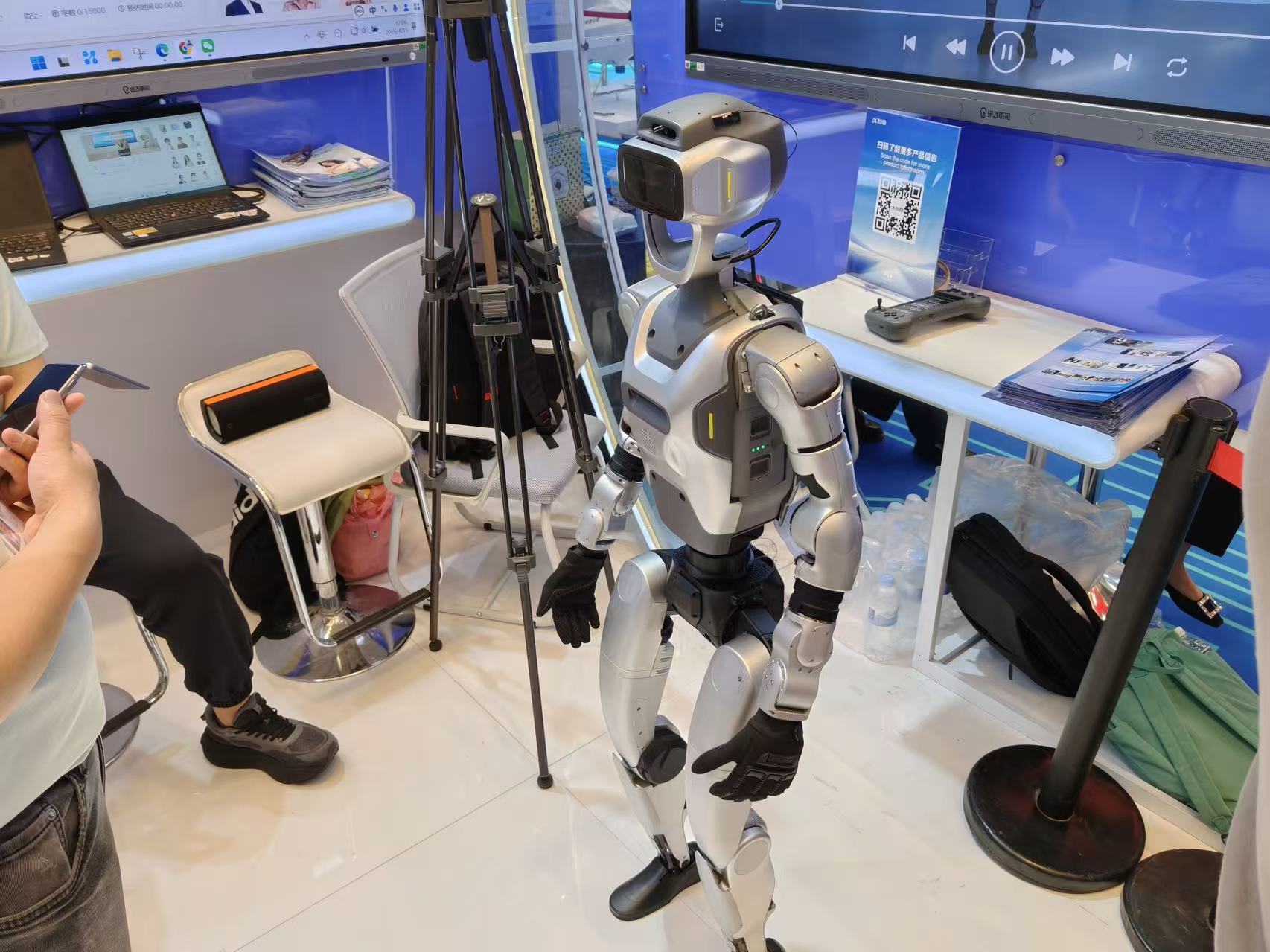 科大讯飞和九号这类的应用和出行领域巨头企业,也在本届广交会带来了旗下服务机器人产品的展示。