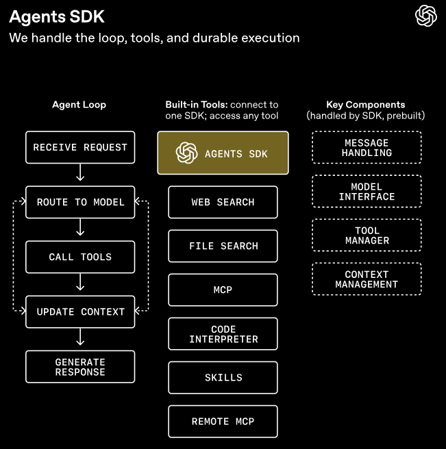 2025年3月,OpenAI第一次推出Agents SDK,主打轻量、少抽象、几行Python就能跑起来的卖点。