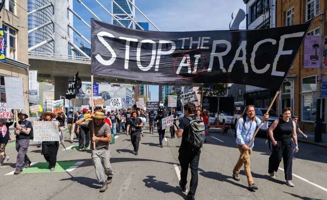 3月曾爆发过一场美国史上最大规模的AI全球抗议活动,200人横跨Anthropic、OpenAI、xAI高喊“停止AI竞赛”!