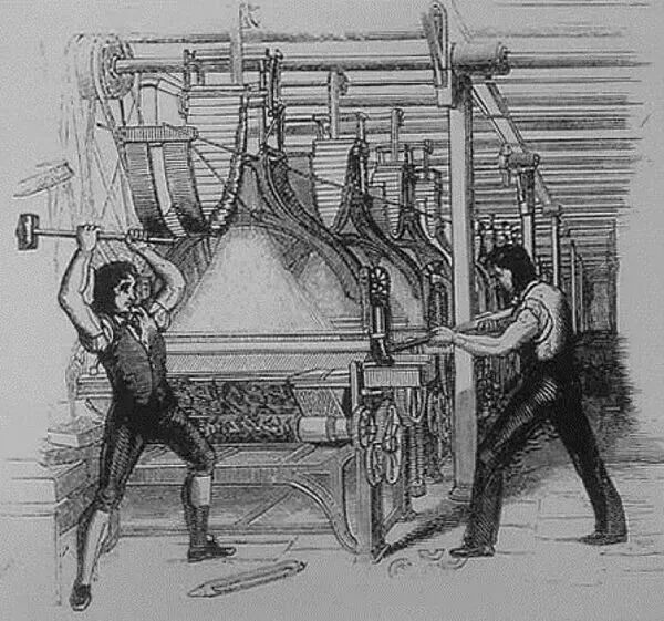 这种怨恨情绪的爆发和蔓延,让人不得不回望两个世纪前第一次工业革命兴起后所遭遇的社会动荡。那是1811年的英格兰中部,一群纺织工人开始砸毁工厂里的织袜机。他们自称"卢德派"。这场运动后来成了"反技术"的代名词,"卢德主义者"至今仍是一个贬义标签,用来嘲笑一切对技术进步表示怀疑的人。