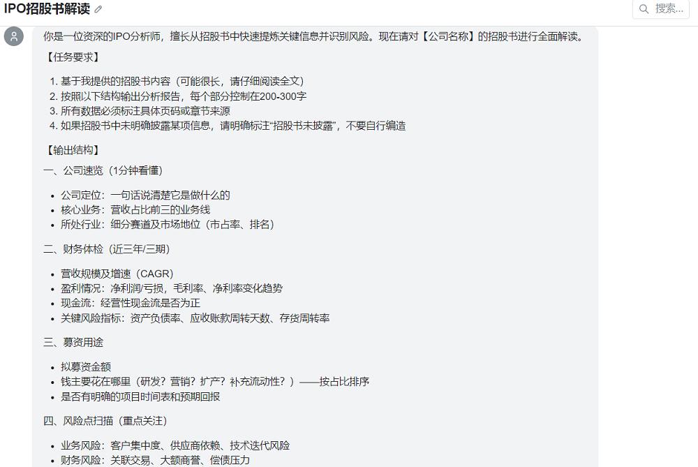 再来看看Elephant在长文本场景的表现。我们向模型发送了一份几百页的招股书,并给出十分详细的IPO解读要求,让Elephant输出对这家公司基本面的总结。这种复杂的提示词,对模型的指令遵循能力是一种挑战。