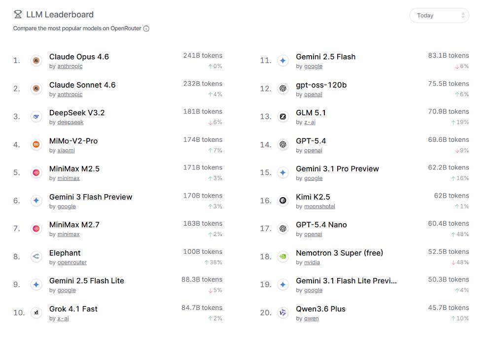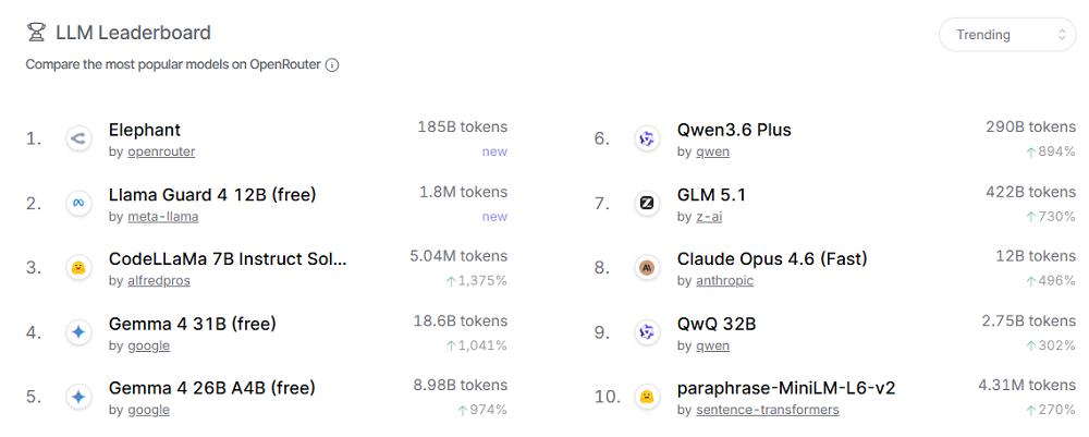 智东西4月16日报道,这两天,一款名为Elephant(大象)的匿名模型,在OpenRouter上悄然亮相。上线不到48小时,这一模型已经冲到OpenRouter热榜(Trending)第一,目前调用量超过1850亿个token。