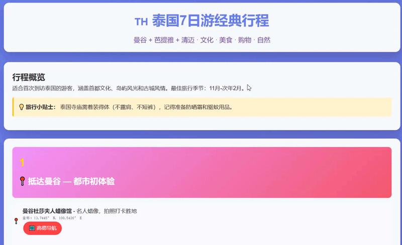 我们还尝试了让Elephant完成Agent类型的任务:将其接入一个OpenClaw类的产品,并要求它规划一次去泰国的7日游,搜索景点注意事项、定位等关键信息,最终打造一个攻略网站。