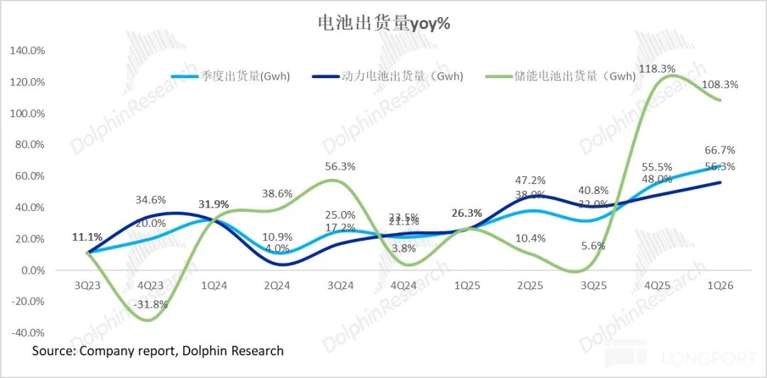 产能释放支撑交付:公司用于缓解储能产能压力的山东济宁基地(规划新增产能超100GWh)在2026年开始逐步释放产能,有力支撑了出货量的高增长。