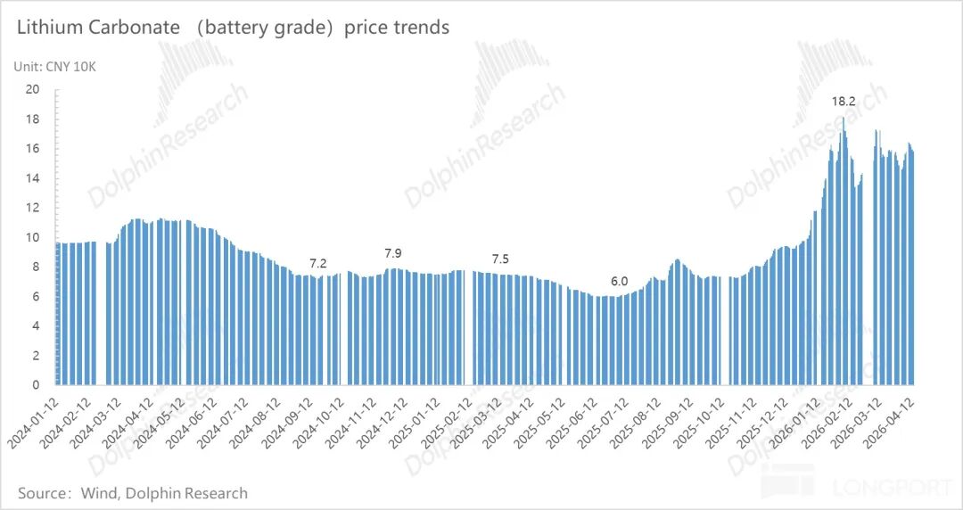 成本与结构双向承压: 碳酸锂均价快速反弹至15-18万元/吨带来成本冲击,同时相对低毛利的储能电池出货占比提升。
