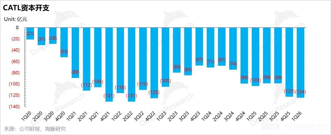 从资本开支的周期律来看,宁德时代正迎来新一轮的扩张拐点。虽然公司在2021-2022年经历了产能的密集投入期,随后因行业阶段性供需错配,资本开支自2022年Q1起进入下行周期(并在2023年Q1触及约67亿元的阶段性低点)。