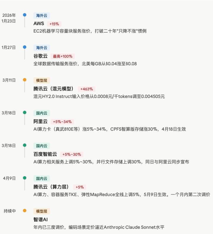 图|2026年全球云计算涨价事件时间线