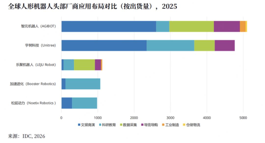 从IDC给出的统计数据来看,这一年全球人形机器人出货量达到了1.8万台,其中,中国厂商在全球市场占据主导地位,智元又以5200台出货量位居榜单第一。