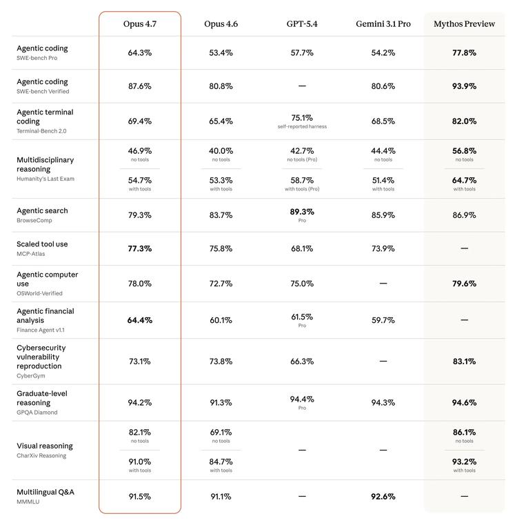 Opus 4.7 的编程成绩是这次发布的主轴。