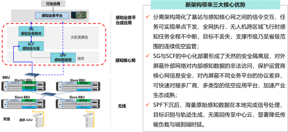 依托与全新结构SF的深度适配,由联通研究院泛终端研究中心、浙江联通联合开发的本地项目商用低空运行监管平台,在完成基于5G-A感知数据的更低时延响应、更深信任连接的基础上,确立了对于基站周边低空24小时不间断监控的更高稳定性数据传输保障能力,为高校类研发等需求筑牢了技术基础。