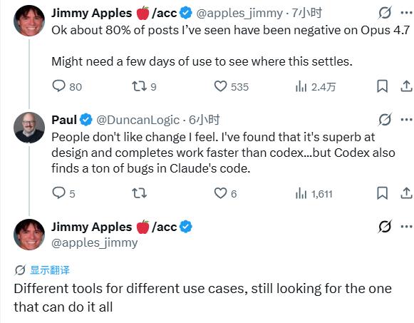 网友@Stardustmemory更是言辞犀利,他认为Opus 4.7在本该简洁的地方凭空制造复杂性,导致他甚至不想续订服务,因为Codex往往能更高效地重写Opus做的计划。
