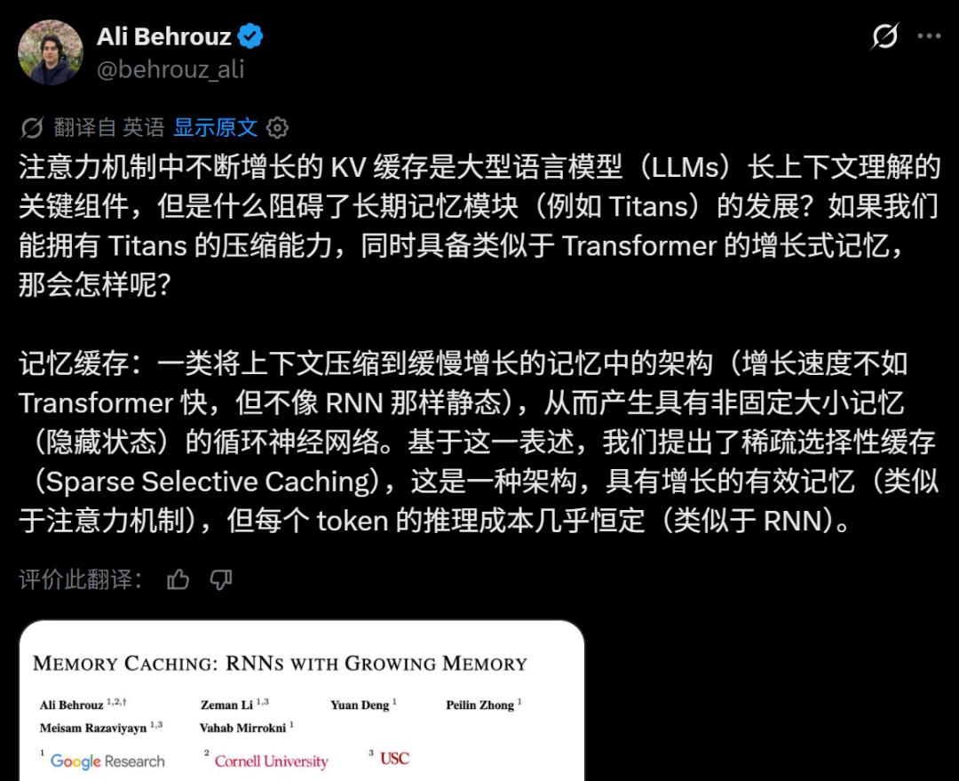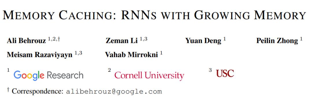 为打破僵局,来自 Google Research 的研究团队提出了一种名为 Memory Caching(MC)的技术,据说简单而有效。
