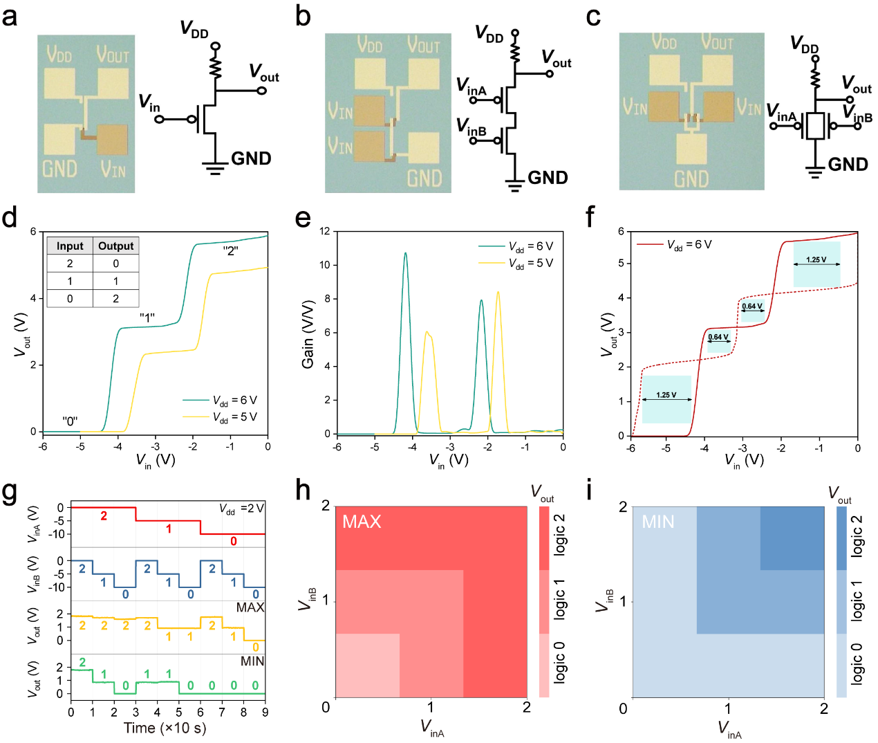 受限于基础物理极限,硅基晶体管的尺寸已无法继续按比例缩小,越来越难以满足人工智能等前沿领域日益增长的计算需求。为此,研究人员正积极开发新型沟道材料,并探索替代传统冯·诺依曼架构的方案,以期取得能够延续甚至超越摩尔定律的突破性进展。然而,基于二进制电路的系统中最关键的挑战之一仍然是功能单元之间及内部连线的片上互连。随着晶体管密度的持续提升,互连所占用的面积预计将超过逻辑单元,这对进一步的微缩与集成构成了重大障碍。多值逻辑(MVL)因其更高的计算效率和数据吞吐能力,被认为是缓解这一问题的有前景的方案。与二进制逻辑不同,MVL在单个逻辑单元内包含多个逻辑状态,能够执行更复杂的运算,从而从根本上降低功耗和芯片面积。传统硅基金属氧化物半导体场效应晶体管(MOSFET)是为二进制逻辑设计的,其固有的电学特性和工艺限制阻碍了MVL所需的多个稳定电压状态的实现。