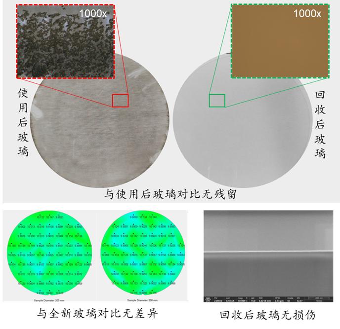 环晶芯科技的核心技术,可以做到临时键合载板的无损回收复用,降低先进封装辅料使用成本。整个加工过程不损伤载板材料,理论上可实现无限次回收复用。