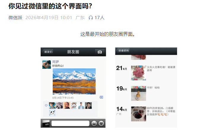 3、微信朋友圈上线 14 年:内部测试 34 个版本,4 月 19 日刚好通过 App Store 审核