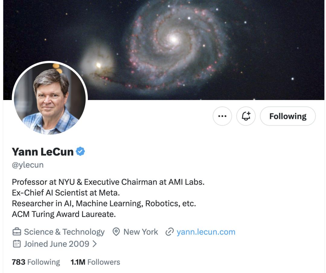 走之前留了一句话:“你肯定不能告诉我这样的研究者该怎么做。” 彼时 Meta 刚完成 AI 架构调整,大规模裁撤基础研究部门 FAIR,引入新管理层。被空降来主导 AI 方向的人,他评价“年轻且缺乏经验”。他没有等,走了,创了 AMI Labs,做“世界模型”。