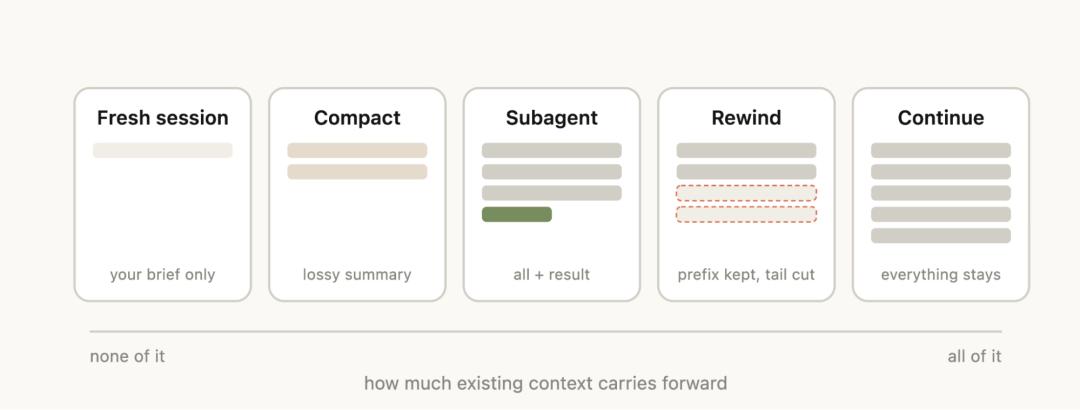 虽然最自然的做法就是继续下去,但另外四个选项可用于帮助你管理上下文。