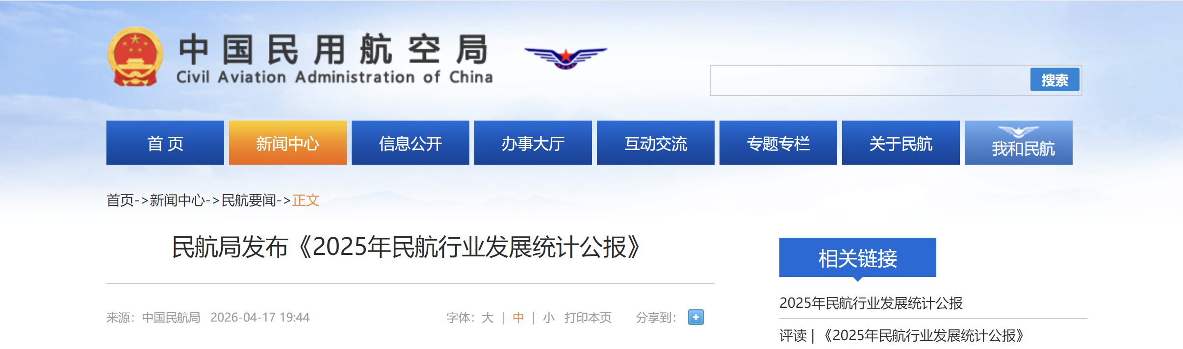 C114讯 4月20日消息(兰茜)近日,民航局发布发布《2025年民航行业发展统计公报》(以下简称《统计公报》),从运输航空、通用航空和低空经济、运输效率与经济效益、航空安全与服务质量、教育与科技创新等12个方面展现了2025年中国民航发展情况。