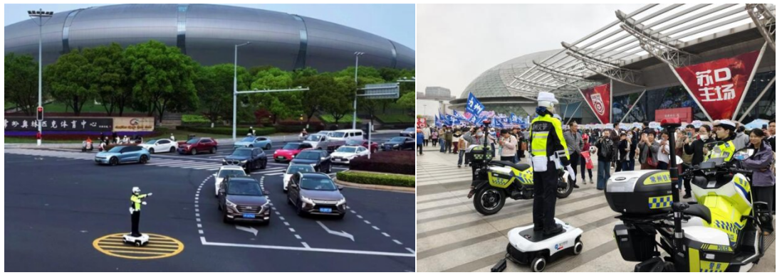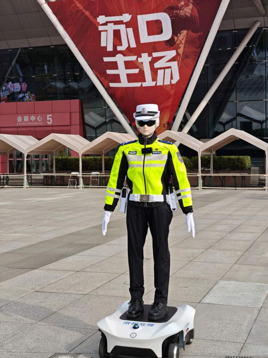 苏超作为江苏省内顶级体育盛会,不仅是深化“体育+科技”融合的重要载体,也承载着推动区域体育事业高质量发展的使命。为应对开幕式期间奥体中心周边人流、车流骤增的交通疏导压力,常州公安交通部门创新启用智警“常安”R050人形交警机器人参与保障,这一举措是大型体育赛事交通保障的全新尝试,打造了“人机协同执勤”的智慧警务模式,是本次苏超开幕的一大亮点。