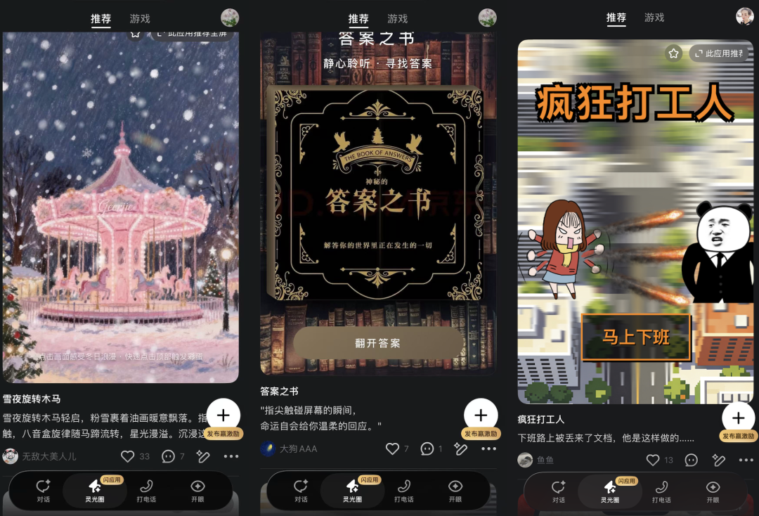 去年十一月,灵光第一次出现在公众视野时,“30秒手搓应用”的体验让不少人第一次意识到,原来不写代码也能做出一个能用的工具。但彼时用户圈子里有一个普遍的声音:自己搓出来的应用只能自己用,既没法分享给朋友,也看不到别人做了什么。