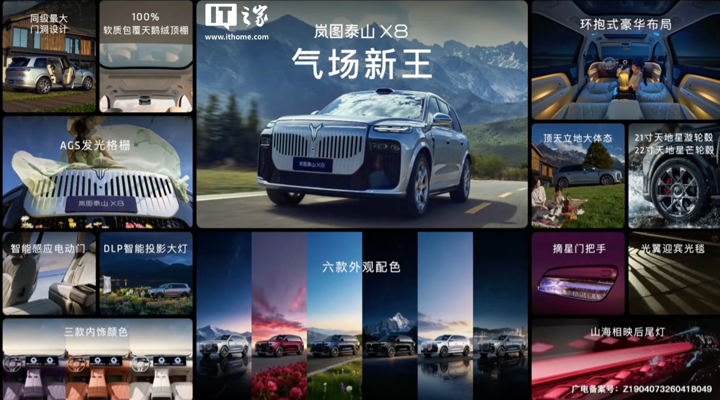 IT之家附岚图泰山 X8 大五座 SUV 亮点如下: