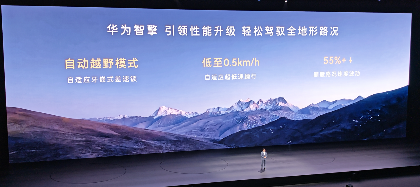 华为智擎采用双 94% 碳化硅动力平台,增程发电效率大于 94%,超过 91% 的行业平均;纯电工况效率同样大于 94%,高于 92% 的行业平均。其还支持自动越野模式,配备自适应牙嵌式差速锁,自适应超低速蠕行低至 0.5km/h,颠簸路况速度波动可减少超 55%。