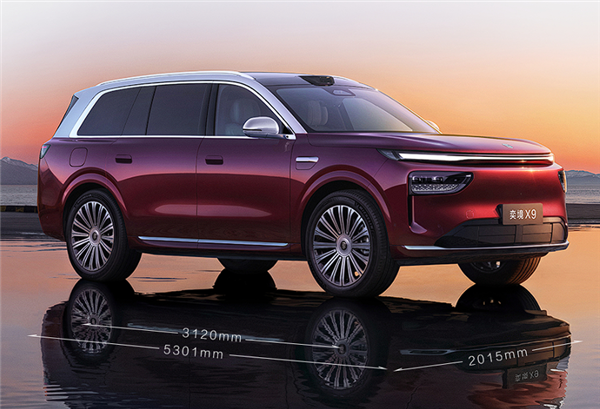 X9定位旗舰大型SUV,车长5301mm、轴距3120mm,采用0.618黄金头高比设计,打造出舒展大气的车身姿态。