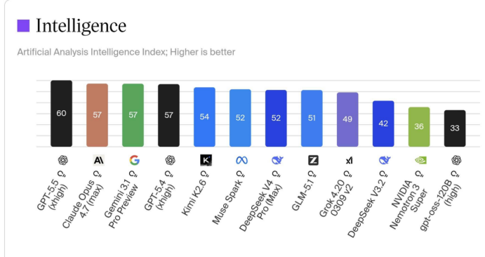 截止发稿,Kimi和DeepSeek都出现在OpenRouter的TOP3模型里,在AA的榜单上,K2.6甚至暂时占得先机。
