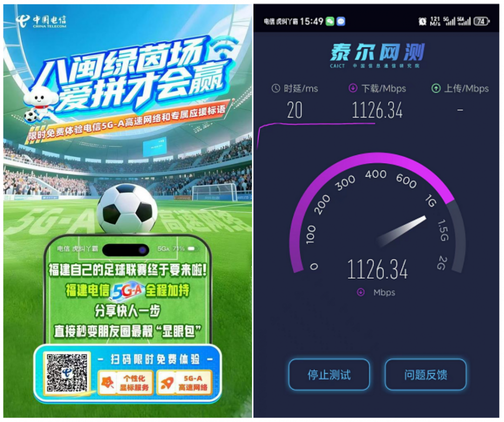 从担心发不出消息,到秒传视频+专属排面,福建电信用5G-A硬实力与暖心服务,圆满完成闽超揭幕战高规格网络保障,以极速网络承载八闽热爱,为这场破纪录的足球盛宴交出满分答卷。