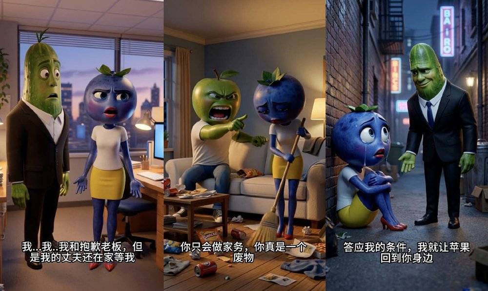现在甚至已经出现了“真人翻拍水果AI短剧”。