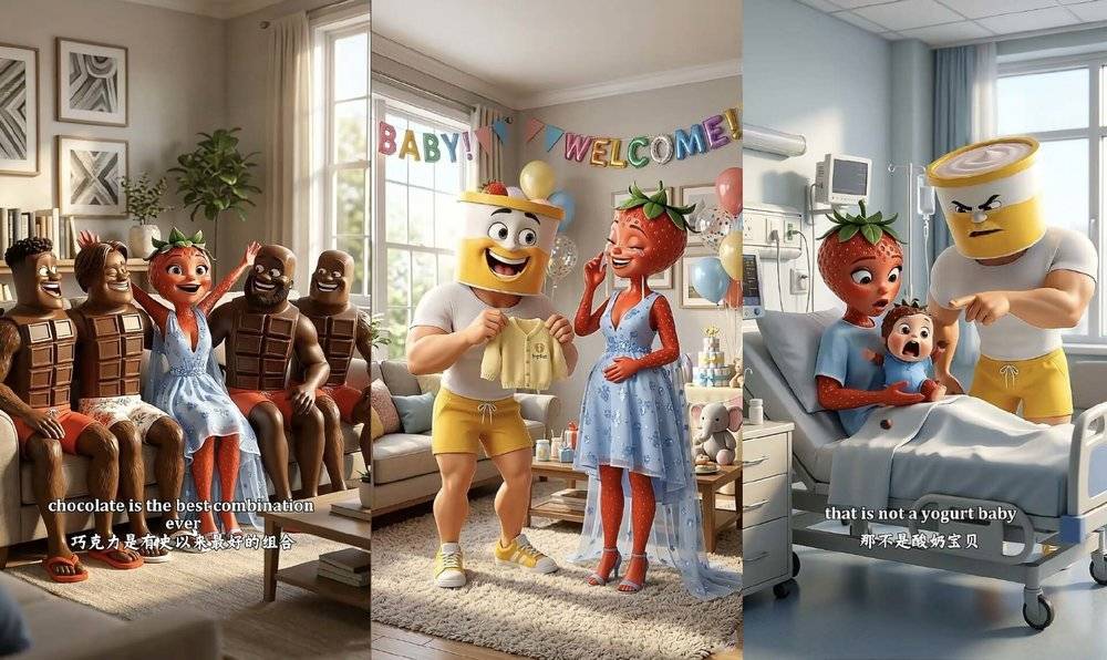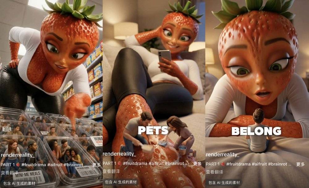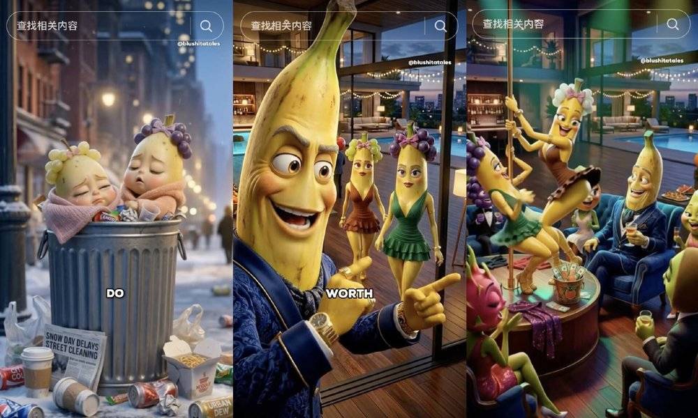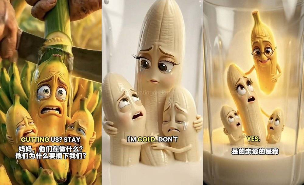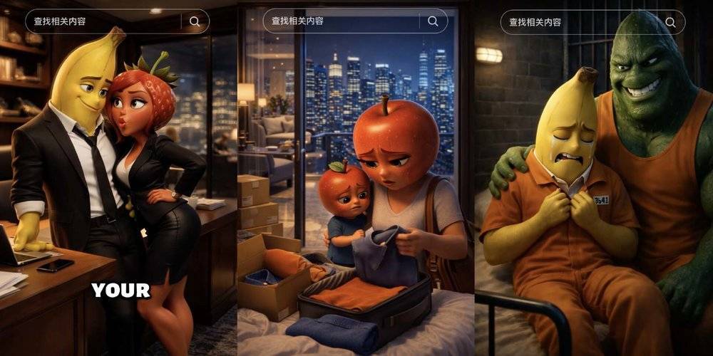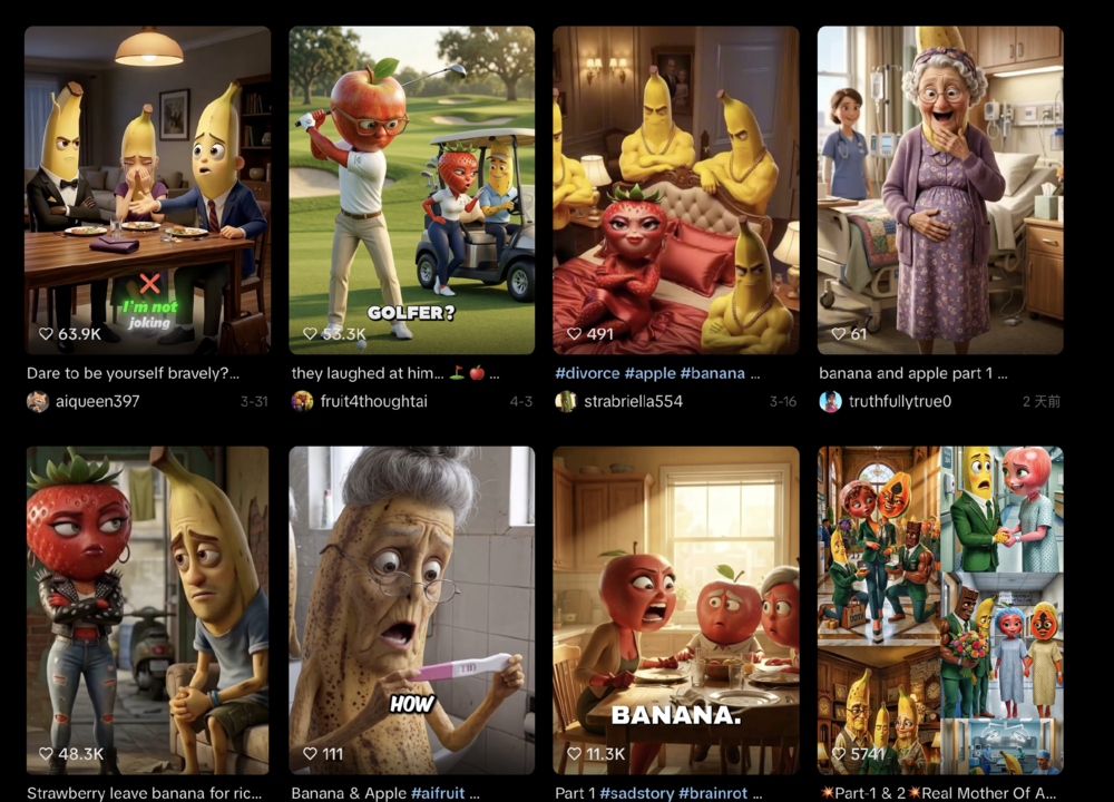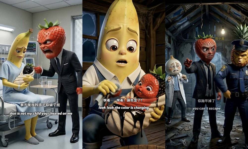 拆解这些水果AI剧情,你会发现人类真是一种脆弱低级的动物。明知道要发生什么,还是忍不住追着看,对着几个家常水果傻乐。