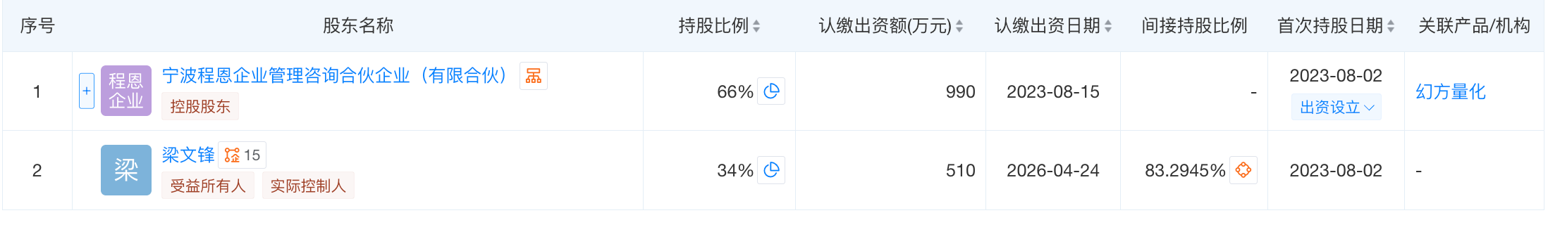 凤凰网科技讯 4月28日,天眼查显示,杭州深度求索人工智能基础技术研究有限公司(简称“DeepSeek”)注册资本由1000万元增加至1500万元,增幅50%。其中梁文锋认缴的注册资本由10万元增加至510万元,持股占比由1%提高至34%,但其作为实际控制人的最终受益股份达到84.3%。宁波程恩企业管理咨询合伙企业(有限合伙)持股比例由99%降至66%。