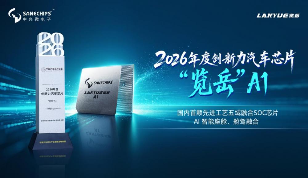 4月26日,由中国汽车芯片产业创新战略联盟组织的“2026中国汽车芯片产业创新成果”评选结果在北京国际汽车展览会期间重磅揭晓,中兴微电子“览岳”A1芯片凭借其首创的五域融合架构和显著提升的性能指标,填补了国内高性能中央计算平台芯片的空白,荣获“2026年度创新力汽车芯片”大奖。
