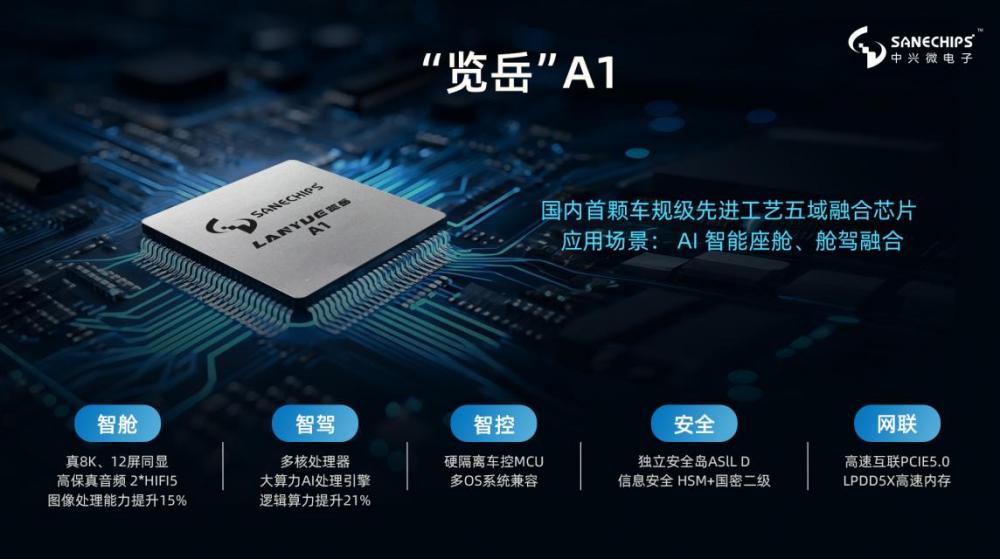 当前,智能网联汽车“全域智能”的技术进化趋势明显,整车中央计算平台架构加速量产落地,而车规级高性能车中央计算平台芯片主要依赖进口,制约产业高质量发展。在此背景下,由中国一汽携手中兴通讯旗下的专业芯片公司——中兴微电子联合推出国内首颗车规级先进制程多域融合芯片览岳”A1。