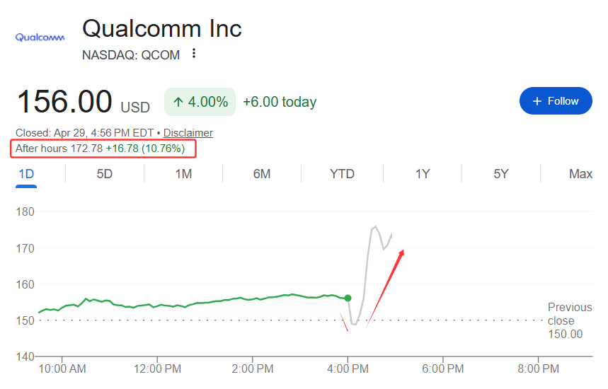 受第三财季指引不及预期影响,多名分析师下调了对高通的评级及目标价,股价在盘后交易中先快速下落约4%。然而,市场对公司长期增长潜力的预期仍为股价提供支撑,随后大涨逾10%。