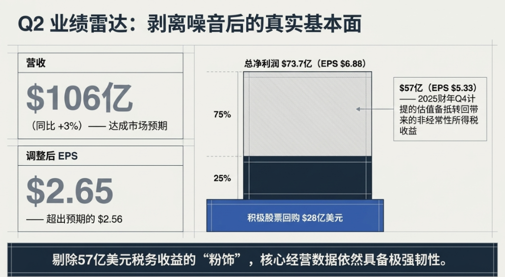 值得关注的是,本季度公司录得57亿美元所得税收益(合每股5.33美元),源于此前在2025财年第四季度计提的估值备抵转回,推动当季净利润达到73.7亿美元,合每股6.88美元。