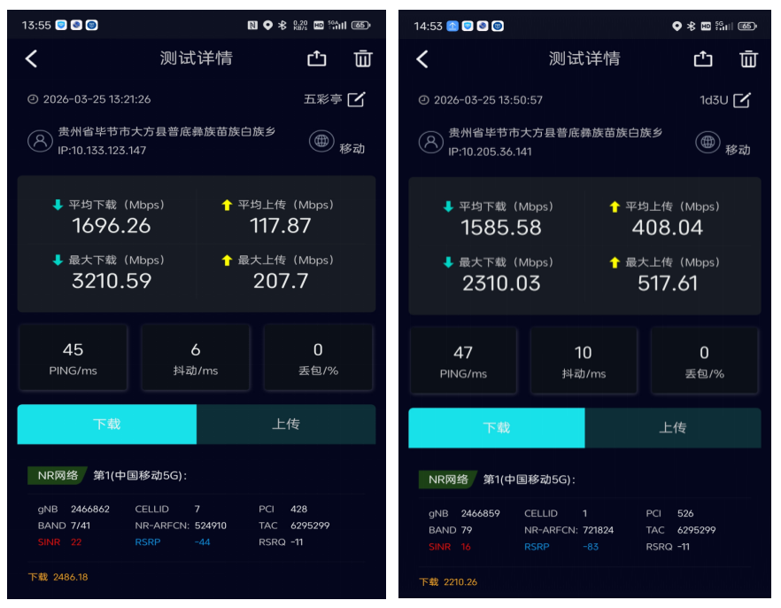 针对数万游客并发上网、高清视频等大带宽需求,在热点区域新建4.9G站点并开通33个3CC小区,通过多频段资源聚合形成连续超大带宽,实现网络容量与速率双提升。现场实测5G-A峰值速率突破3.2Gbps,有效保障网络“高吞吐、低卡顿、稳连接”。